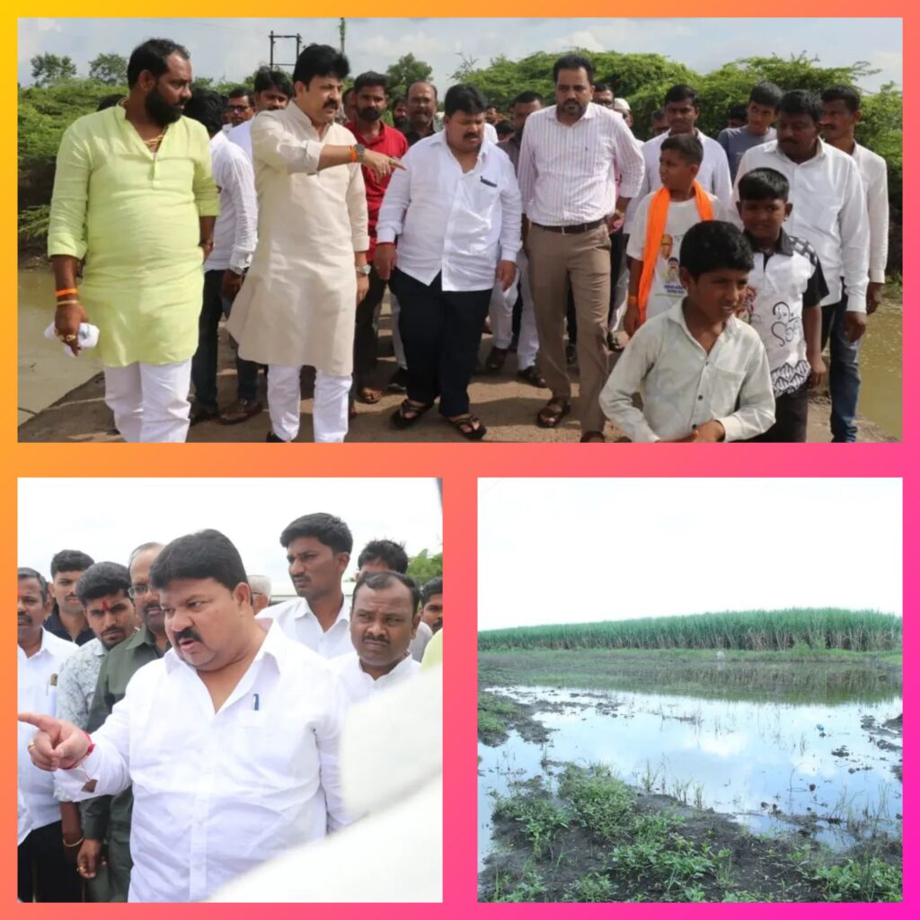 आमदार राजू खरे यांनी रविवारी (ता. 21 सप्टेंबर) मोहोळ तालुक्यातील शिंगोली, तरटगाव, आष्टे, नंदगाव, हिंगणी, मलिकपेठ यांसह अन्य गावांतील बाधित शेतकऱ्यांच्या नुकसानीची बांधावर जाऊन पाहणी केली. त्यांनी शेतकऱ्यांना धीर देत गृहराज्यमंत्री योगेश कदम हे उद्या पाहणी दौऱ्यासाठी येत आहेत, असेही नमूद केले.