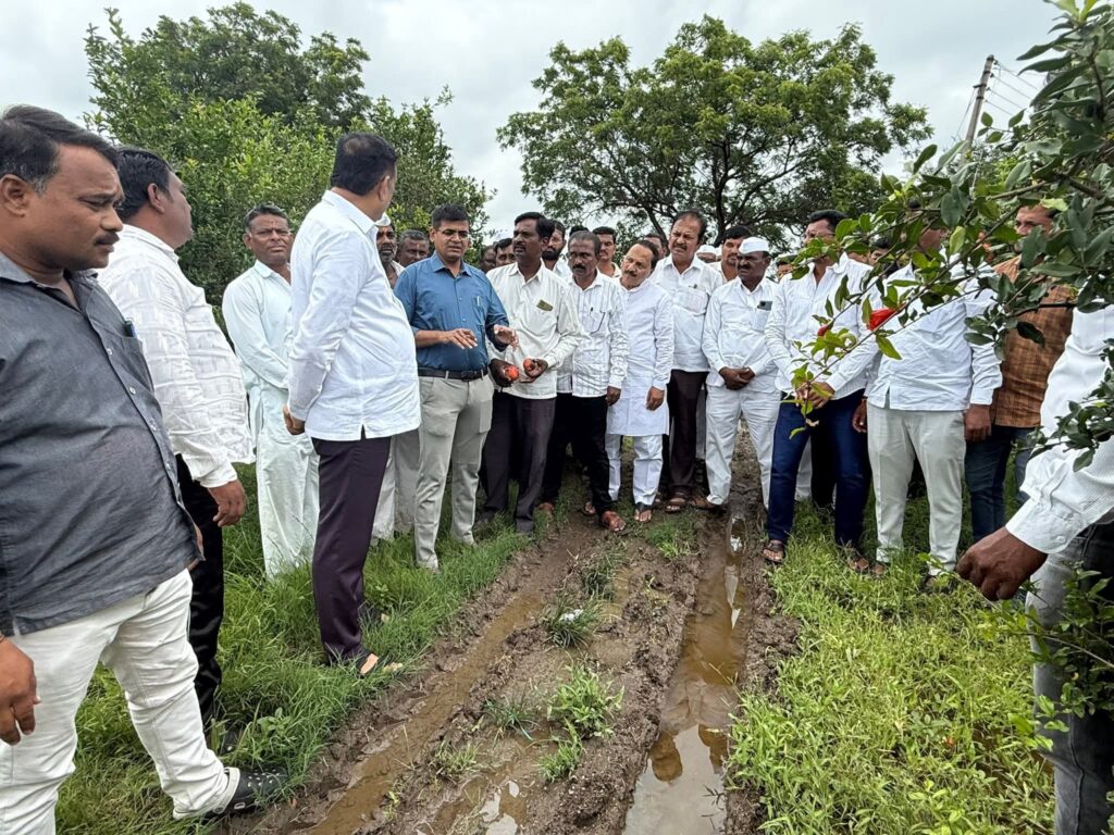 द्राक्ष बाग, डाळींब, फळ बागा व ऊसाच्या नवीन लागणीच्या क्षेत्रामध्ये खुप मोठ्या प्रमाणात पावसाचे पाणी साठल्यामुळे शेतकऱ्यांच्या द्राक्ष, डाळींब, फळ बाग व ऊसाचे खुप मोठ्या प्रमाणात नुकसान झाले त्याची पाहणी केली.