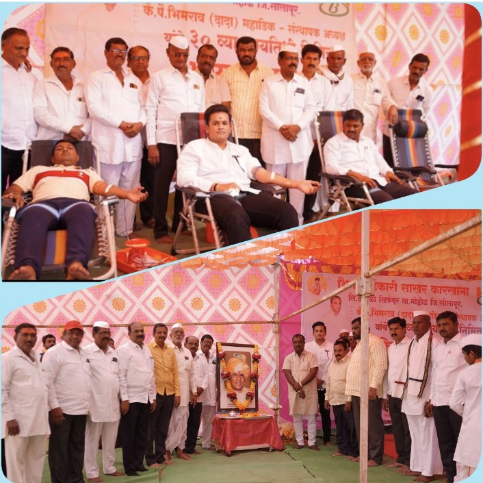 भीमा सहकारी साखर कारखान्याचे संस्थापक अध्यक्ष कै. पैलवान भीमराव (दादा) महाडिक यांच्या ३० व्या पुण्यतिथीनिमित्त कारखाना कार्यस्थळावर विविध सामाजिक आणि धार्मिक कार्यक्रमांचे आयोजन करण्यात आले होते. याप्रसंगी दादांच्या पुतळ्यासमोर आयोजित कार्यक्रमात त्यांना अभिवादन करण्यात आले. यावेळी झालेल्या भव्य रक्तदान शिबिरात ११३ रक्तदात्यांनी उत्स्फूर्तपणे रक्तदान करत दादांच्या समाजसेवेचा वारसा जपला. तसेच पुण्यतिथी कार्यक्रमाच्या निमित्ताने ह. भ. प. किरण बोधले महाराज यांच्या सुश्राव्य कीर्तनाचे आयोजन करण्यात आले होते. महाराजांनी आपल्या कीर्तनातून कै. भीमराव (दादा) महाडिक यांच्या जीवनकार्याचा आणि त्यागाचा गौरव केला. दादांनी सहकारातून परिसरातील शेतकरी आणि कष्टकऱ्यांसाठी केलेल्या कामाची महती सांगत, समाजसेवेचे महत्व विषद केले. महाराजांच्या कीर्तनाने उपस्थित श्रोते भारावून गेले होते.