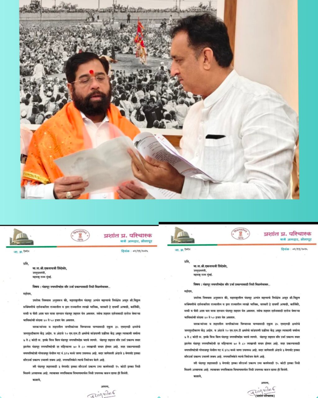 पंढरपूर नगरपरिषदेस सौर ऊर्जा प्रकल्पासाठी निधी मिळावा:- मा.आ. प्रशांत मालक परिचारक