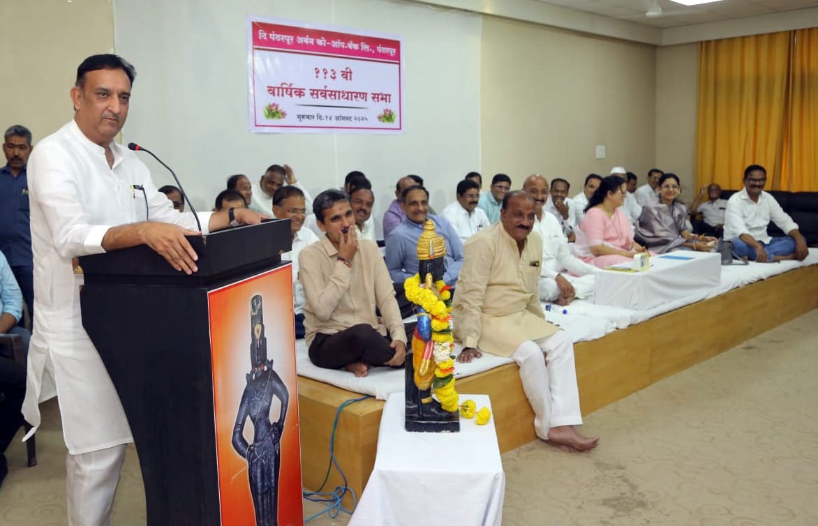बँकेची 113 वी वार्षिक सर्वसाधारण सभा बँकेच्या कर्मयोगी सभागृह, शाखा नवीपेठ, पंढरपूर येथे गुरूवार दि.14 ऑगस्ट 2025 रोजी सायंकाळी 5.00 वाजता खेळीमेळीच्या वातावरणात संपन्न झाली, याप्रसंगी ते बोलत होते. यावेळी बँकेचे कुटुंबप्रमुख मा.आ.प्रशांत परिचारक तसेच विविध संस्थांचे पदाधिकारी व मान्यवर मोठ्या संखने उपस्थित होते. याप्रसंगी उपस्थितीत सभासदांचे प्रशिक्षण पार पडले.