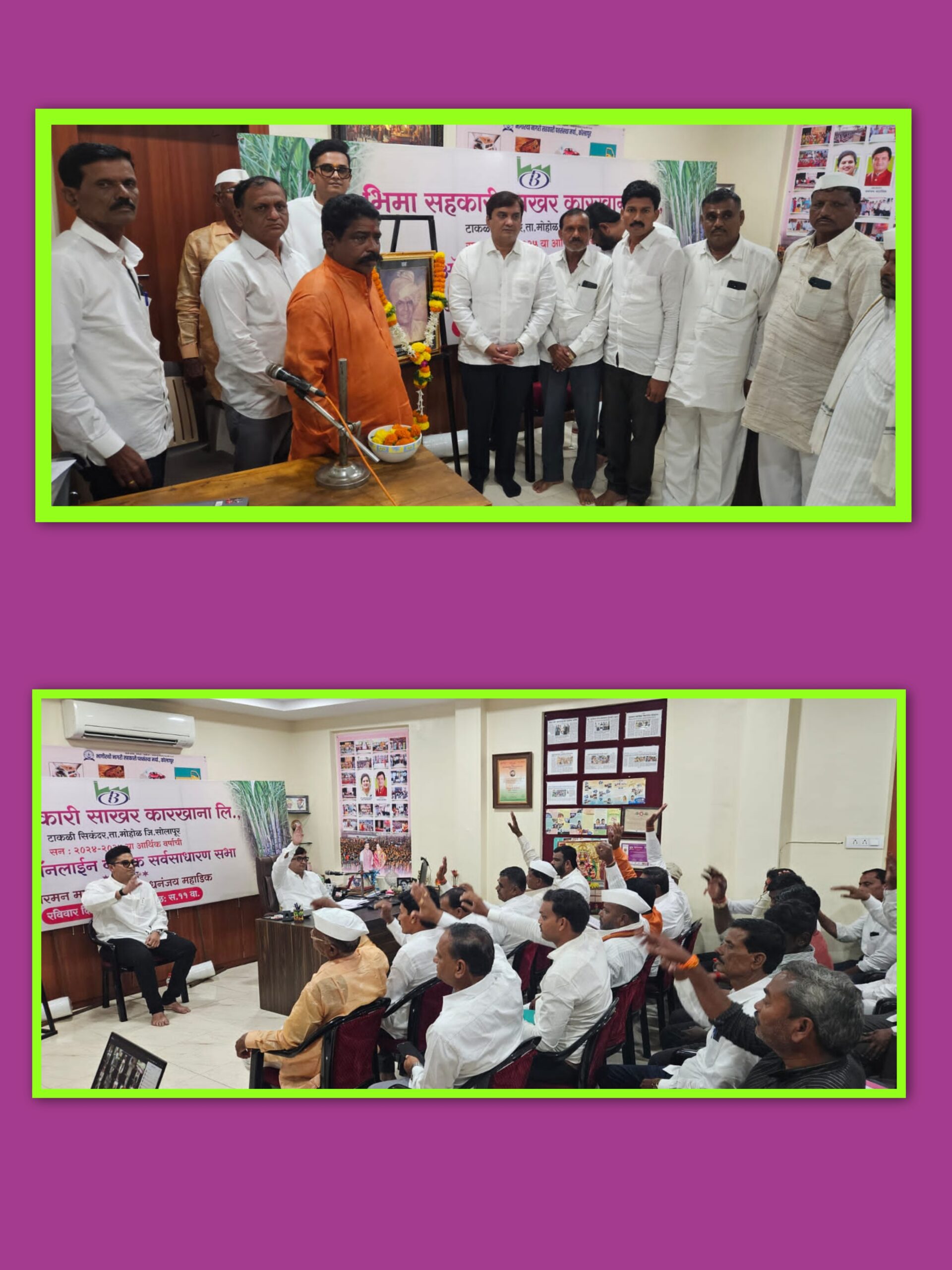 भीमा मल्टीस्टेट सहकारी साखर कारखाना लि, टाकळी सिकंदर, ता. मोहोळ, जि. सोलापूर या संस्थेची ५० वी वार्षिक सर्वसाधारण सभा ऑनलाईन पध्दतीने खेळी मेळीच्या वातारवणात पार पडली. सदर सभेच्यावेळी ऑनलाईन पध्दतीने सभासदांनी सहभाग नोंदवला व सभेच्या कामकाजास सुरवात झाली त्यावेळी कारखान्याचे संचालक सुनिल चव्हाण यांनी प्रथम श्रध्दांजलीचा ठराव मांडला. त्यास सर्व सभासदांनी श्रध्दांजली वाहिली व कारखान्याचे प्रभारी कार्यकारी संचालक श्री. शेख के. एम. यांनी सन २०२४ – २५ च्या वर्षाचा आर्थिक ताळेबंद पत्रके व सर्व विषयांचे वाचन केले त्यांस मान्यता देणेत आली. त्यानंतर कारखान्याचे चेअरमन मा. श्री. विश्वराज धनंजय महाडिक यांनी अहवाल सालात कारखान्यास आलेल्या अडचणी व त्यावर मात करुन कारखान्याचा गळीत हंगाम सन २०२४- २५ पार केला व पुढील हंगाम सन २०२५ – २६ शासनाची मान्यता मिळताच चालू करणार असल्याचे जाहीर केले. त्यासाठी आवश्यक ती तोडणी वाहतूक यंत्रणा भरली असून मशिनरीचे काम प्रगतीपथावर असून कारखाना सात ते आठ लाख मे. टन ऊस गळीत करणार असल्याचे तसेच आपले कारखान्यास इथेनॉल व 200KLPD डिस्टलरी प्रकल्प उभा करणेकरिता शासनाची मान्यता मिळाली असून तो लवकरात लवकर उभा करणार आहे. असे सांगितले. त्यानंतर कारखान्याचे मार्गदर्शक संचालक तथा खासदार धनंजय महाडिक यांनी कारखाना आर्थिक अडचणीत येवून बैंक खाती एन.पी.ए मध्ये गेलेली असून तरी सुध्दा स्वः भांडवल गुंतवूण कारखान्यास काहीही कमी पडू देणार नाही व शेतकरी आणि कामगारांना गळीत हंगाम सन २०२५ – २६ मध्ये अडचण येवू देणार नाही व सिझन २०२४- २५ मध्ये गळीतास आलेल्या ऊसाचे बील शेतकऱ्यांना रु. २८००.०० प्रमाणे दिलेले आहे. तरी सुध्दा कारखाना अडचणीत असताना ऊस उत्पादक सभासदांनी कारखान्यास ऊस पुरवठा केला व बील देण्यास ऊशीर झाला म्हणून काटा पेमेंटने गळीतास आलेला ऊस वगळून कारखान्यास सुरुवातीस आलेल्या ऊसास वाढीव रु. ५०.००रु. प्रति मे. टन व ज्यांचे रु. २८००.०० प्रमाणे बील देण्याचे राहिले होते अश्या शेतकऱ्यांना रु १०० प्रति मे. टन या प्रमाणे बील देण्याचे जाहीर केले.